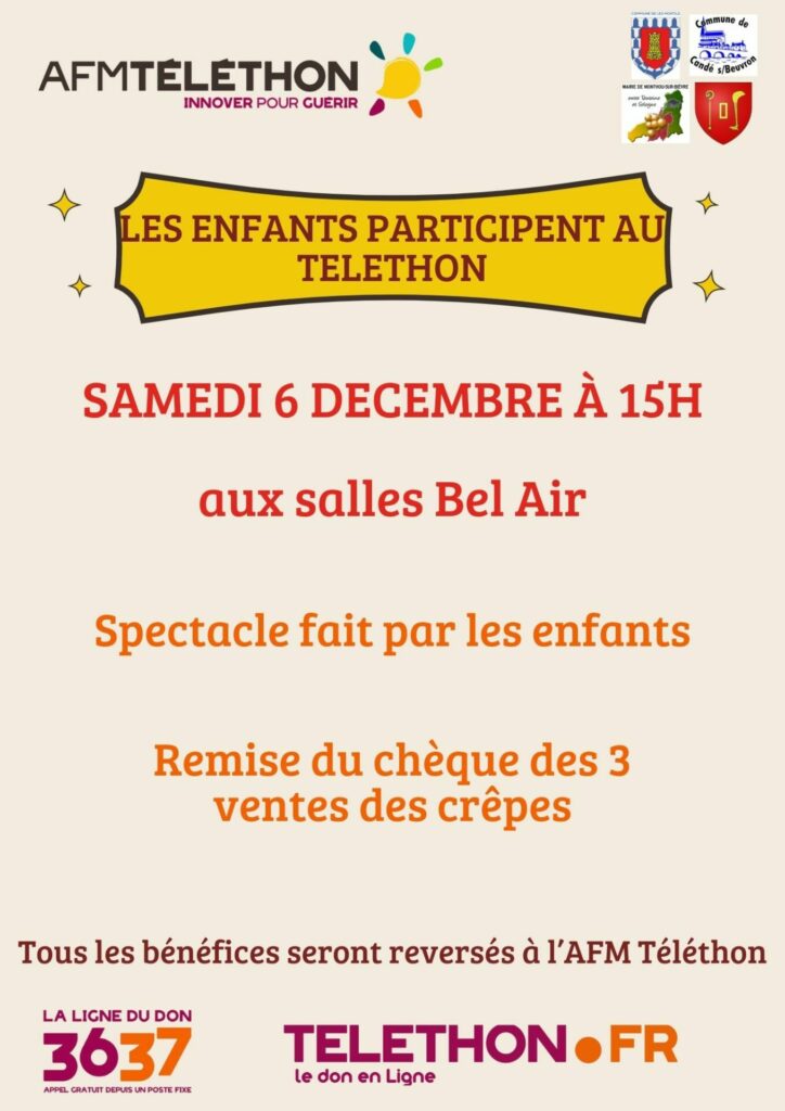 Les enfants ont préparé un spectacle spécial pour l’occasion et réaliseront leur remise de chèque au AFM Téléthon, alors venez nombreux les soutenir!!!
